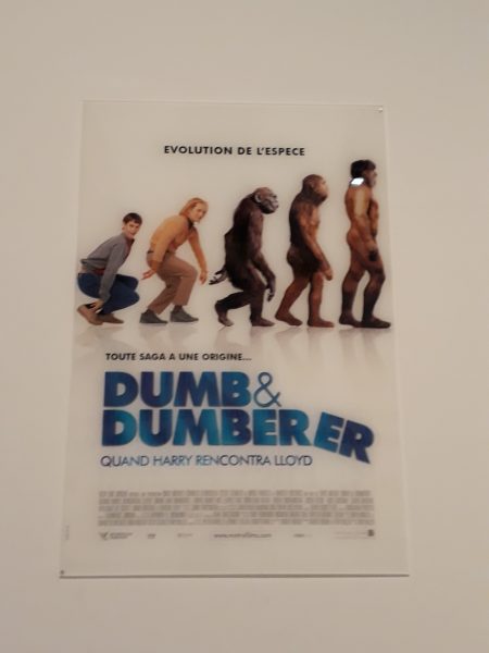 La conclusion se trouve dans une dernière salle où les représentations sont diverses, affiches de film, jouets….Pour finir par cette Néandertalienne habillée à la mode de chez nous, pas si différente!