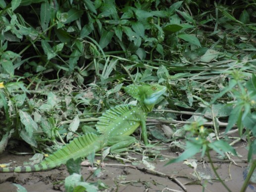 Hugo débusque un Basilisc (Basiliscus basiliscus) de belle taille, appelé ici Lézard Jésus Christ.