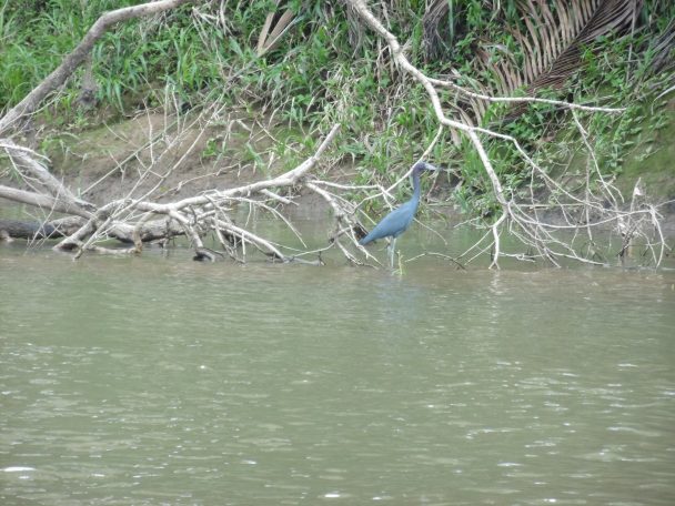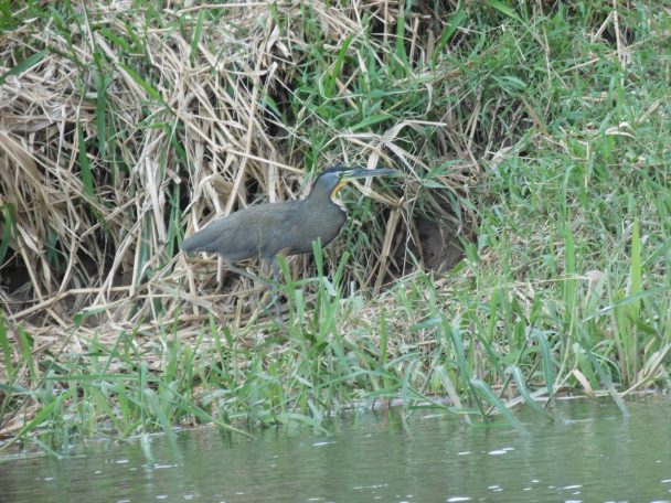 Hérons : plusieurs espèces, le petit héron bleu, le grand héron bleu, les aigrettes blanches qui accompagnent le bétail. La vedette est le Héron-tigre (déjà observé à Tortuguero). Ce dernier fait un véritable défilé, une démonstration en étirant haut son cou pour exhiber ses rayures verticales qui lui ont valu son nom. Il existe aussi un petit héron nocturne, impossible à deviner dans les arbres où il dort, sauf avec l’expérience et l’acuité d’Hugo qui arrête son bateau jusqu’à ce que tous l’aient bien vu et que les photographes aient réussi leur photo.