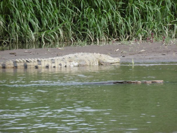 Les autres stars de la croisière sont les crocodiles qu’Hugo nomme cocodrilo (c’est le nom espagnol). Ils se prélassent sur les bancs de sable. Au début j’ai eu du mal à les repérer, je croyais voir des rochers. Je suis surprise de leur promptitude à décamper. Je n’aurais jamais imaginé qu’un animal aussi immobile soit capable de rapidité. Pour les photographier il faut réagir très vite, ils rejoignent très vite l’eau où seuls, yeux et narines sont à l’air libre. Au début je compte les crocodiles, 6, 8 puis je perds le fil du décompte.