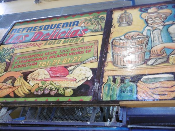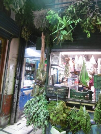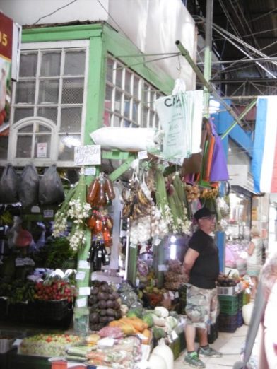 8h45, à l’angle de la Calle 6 et de l’Avenida Central : le Mercado Central. Les boutiques ouvrent, les marchands lèvent les rideaux de fer et suspendent leur marchandise au-dessus des vitrines. Il y a assez peu de légumes et fruits, plutôt des poissonniers, des bouchers et fromagers. Le poisson n’est pas étalé à plat comme chez nous mais rangé dans des casiers de verre avec de la glace. Difficile d’entrevoir un poisson entier. Une case contient des œufs de tortue. Les herboristes ont fait de jolis étalages ; On peut également acheter des souvenirs.