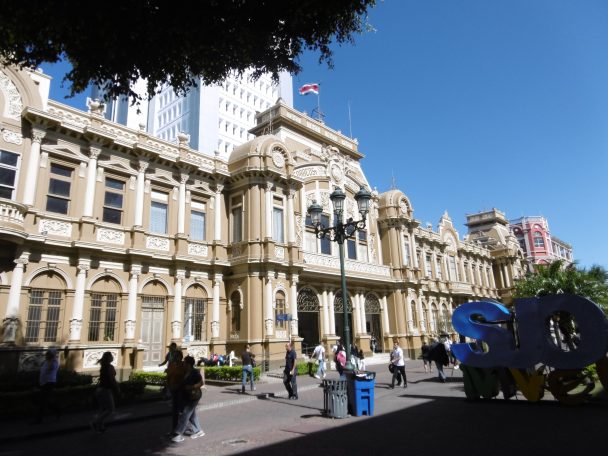 Le Musée National ressemble un peu à un château avec tour et créneaux, avec escalier monumental, crépi de jaune. C’est une ancienne caserne qui a été transformée lorsque l’armée a été abolie en 1948. Juste à côté se trouve le bâtiment en construction de l’Assemblée législative. A l’arrière du musée un mur est le support d’une exposition de Street Art les artistes ont signé leurs œuvres.