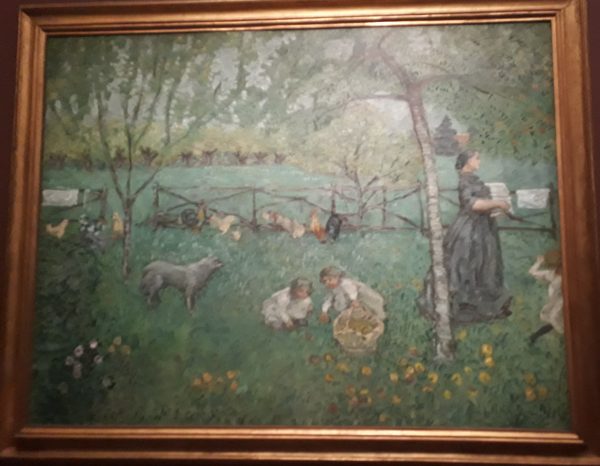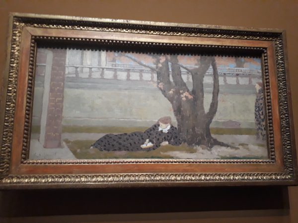 On entre dans l’exposition par l’illustration des Femmes au Jardin avec la série des Jardins Publics de Vuillard qui m’a énormément plu! En face je découvre un Maurice Denis plus intime – inspiré par l’amour de sa fiancée – qui a peint sur le thème des saisons de petits panneaux colorés très séduisants, conçus pour le décor d’une chambre de jeune fille (celui que j’ai préféré : Avril ne doit pas être pris en photo) .