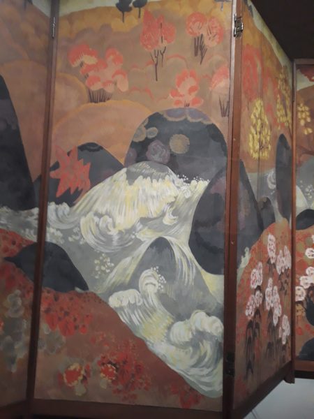 Je ne pensais pas être aussi agréablement surprise par tant de nouveauté! Le projecteur éclaire un aspect original de leur production : Le Décor. Comme dans l’exposition Mucha la frontière entre Beaux Arts et Arts Décoratifs se trouve effacée. Encore une autre exposition-parente récente, celle du Japonisme qui trouve un écho!