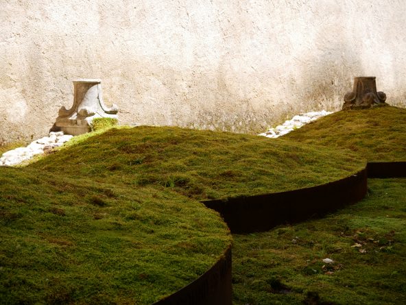 Dans une galerie attenante, une plasticienne contemporaine Maria Dompé a installé « Atrium Silentium » « dedicato a tutti che di questo silenzio si sono nutriti » composé de trois cercles de ferraille remplis de mousse bien verte. Avec l’art contemporain, je fais des efforts….refrain connu.