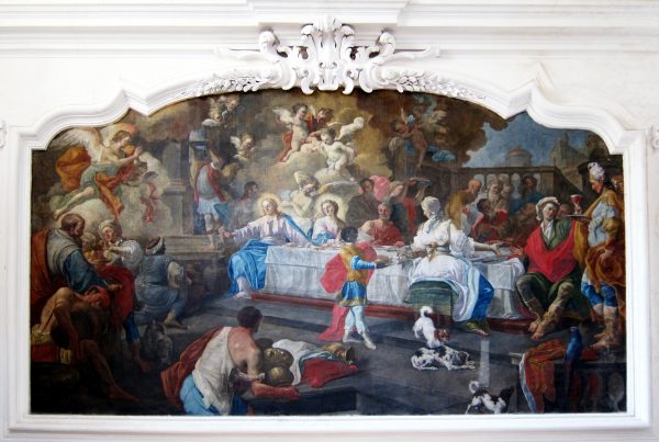 Le réfectoire est de très grande dimension. Il ne reste plus rien du mobilier sauf les chaires de bois contre les murs ; En revanche on peut admirer le pavement et un grand tableau d’Alessio d’Elia (1749) qui semble lui aussi profane avec de belles dames, des chiens élégants : Les Noces de Cana.