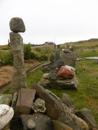 L’autre « musée » de Djupivogur JFS Handicraft & stone garden est à l’écart : une maison rouge est entourée d’une accumulation de galets, ossements de baleine, minéraux, bois flotté et sculptures naïves. Dans le « jardin de pierres » des galets représentent le « peuple caché » elfes et trolls, en référence à la mythologie nordique ; le plasticien a aussi construit des navires de pierre. Des échantillons colorés rouges ou verts, des fragments d’obsidienne brillent sont alignés dehors. Dans une véranda, des têtes d’orques aux dents redoutables sont suspendues. Avec des bois flottés ou des branchettes de bouleau il a créé des silhouettes fantastiques, des rennes, un traineau. L’artiste traverse le jardin, sur sa casquette il a mis des ailes d’oiseau. Dans ce village perdu, il faut être créatif et se contenter des ressources locales.