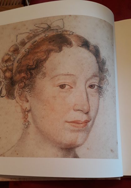 En plus du plaisir d’admirer des dessins d’une grande finesse, ce qui m’aurait comblée, j’entre dans cette cour des femmes et découvre des dames et parfois des petites filles aux visages expressifs. Chaque dessin est accompagné d’une notice historique racontant parfois l’histoire ou s’attachant à un détail vestimentaire.