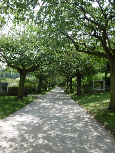 La promenade y est particulièrement agréable en cette journée qui s’annonce caniculaire. En revanche, la traversée des grandes pelouses est une épreuve et on ne peut pas s’attarder dans le cloître végétal qui n’a pas d’ombre.