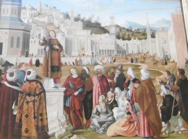 Saint Jean Baptiste Leonardo da Vinci (1513-1516)Lumineuse Prédication de Saint Etienne à Jérusalem de Carpaccio (1514) qui s’est amusé à donner une tonalité orientale avec les barbes et turbans et constructions pittoresques