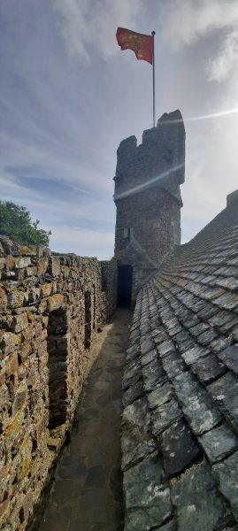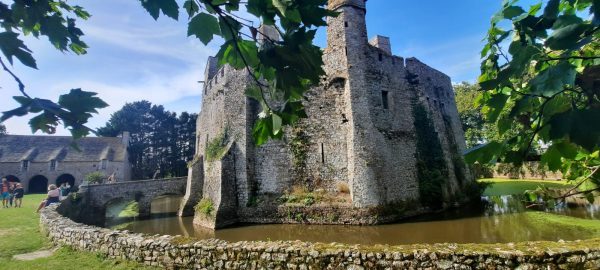 On passe un petit pont et la poterne pour arriver dans la basse-cour plantée d’un grand châtaignier et d’un vieux poirier. Visite en sens obligatoire (Covid19 oblige) dans le logis et jusque sur le chemin de ronde. C’est une belle visite et j’aurais aimé y consacrer encore plus de temps.