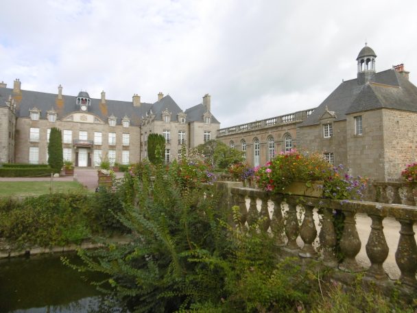 La route derrière le château mène à la Centrale nucléaire finalement assez bien cachée dans un creux jouxtant le port de Dielette. L’itinéraire lui tourne le dos. Le GR longe la côte à travers des buissons épineueux (prunelles, ronces, ajoncs). De temps en temps il y a une belle échappée sur la mer et les îles Anglo-normandes. Le sémaphore n’existe plus. Le bâtiment d’habitation a été transformé en restaurant panoramique « Le Sémaphore » qui a même des chambres. La balade devient aérienne ; lesentier est aménagé avec des marches dans les passages délicats.