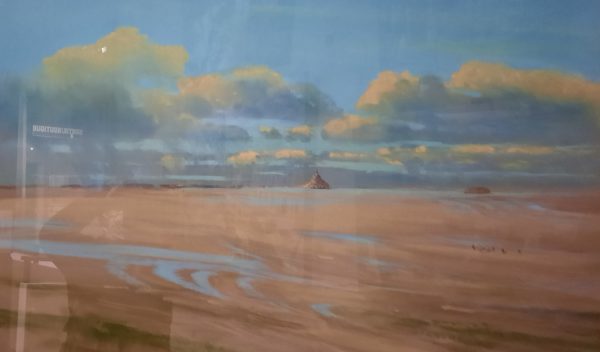 J’ai seulement fait le Mont-Tombelaine, à deux reprises, avec pique-nique à Tombelaine. La première fois, nous sommes revenus au galop sous un orage carabiné. Passer une rivière a été plus sportif avec le vent qui soufflait fort et l’eau qui dévalait à toute allure. Grand souvenir ! mais quelles couleurs sur la baie …