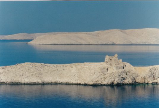 Presqu’île de Zadar vers le nord. Des troupeaux traversent la route. Les villages ne sont pas plus pittoresques que ceux de la côte ; les maisons de pierre sont écroulées, les maisons de brique et de ciment quelconques dominent. Il y a deux modèles : un premier à toit de tuiles en pente, généralement un étage, raffinement : des arcades en ciment, pas de crépi. L’autre modèle à terrasse qu’on rehausse pour construire un deuxième étage avec un escalier extérieur sans rampe débouchant parfois sur rien du tout. Pas de crépi mais des tonnelles de vigne.