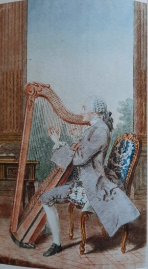 Carmontelle : Ange-Laurent de La Live de Jully jouant de la harpe