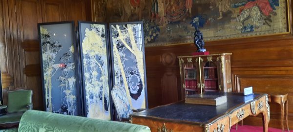 Les panneaux, principalement des paravents sont distribués dans toutes les pièces du château y trouvant une place harmonieuse.