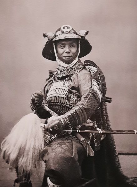 Cette exposition n’est pas chronologique, elle est plutôt thématique. Nous découvrons tout d’abord l’équipement du samouraï sur de très belles photos anciennes :