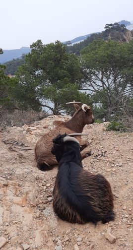 Jolie rencontre avec deux chèvres très tranquille, presque apprivoisées qui se prêtent aimablement à la photo.