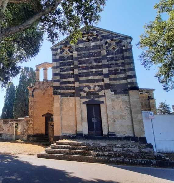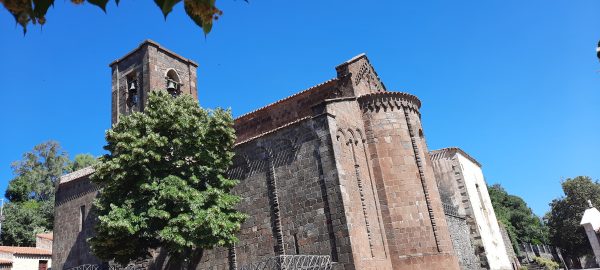 La petite église romane San Paolo, à l’entrée de la ville, est à moitié incluse dans le cimetière. Construite en deux étapes au XIIème siècle et au XIIIème avec une grande variété de matériaux. Sur la façade une alternance de pierre volcanique sombre et de grès clair et jolies arches romanes. On observe le contraste entre le porche et la façade noire et blanche avec l’abside dans le cimetière très claire. Selon le Guide Vert on aurait pu voir un retable catalan XVIème siècle si l’église avait été ouverte.