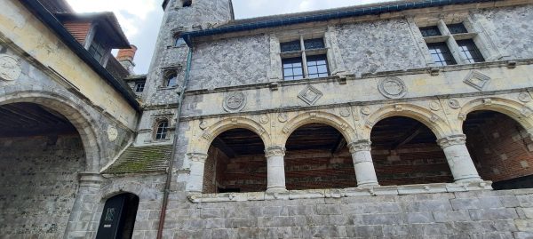 L’architecture du manoir est aussi intéressante. La loggia raconte la visite de François 1er figurant avec la reine sur des médaillons finement sculptés en compagnie d’Eole (dieu des vents donc important pour les marins, Ops la déesse de l’abondance, et les armes des Medicis. « Médicis de Dieppe » était le surnom d’Ango. Cette loggia italienne rappelle que nombreux des capitaines étaient italiens. L’Italie était à la mode sous François 1er.
