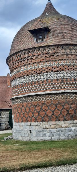 Je suis bluffée par la variété des décors : mosaïques de silex, alliance de la brique et de la pierre, façades à pan de bois incluant des briques à la place du torchis, jeux avec les briques dans le colombier…