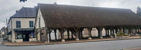 Au détour de la route, un village pittoresque : une halle de bois très bien conservée. Il y a même un escalier pour accéder au grenier.