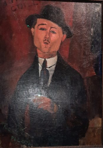 Arrivé à Paris en 1906, Amedeo Modigliani rencontre Paul Guillaume en 1914 par l’intermédiaire de Max Jacob. la première salle est consacrée au marchand avec Trois grands portraits de Paul Guillaume ornent els cimaises. Il faut dire que Paul Guillaume est chez lui à l’Orangerie. Sa collection est voisine des salles d’expositions temporaires.