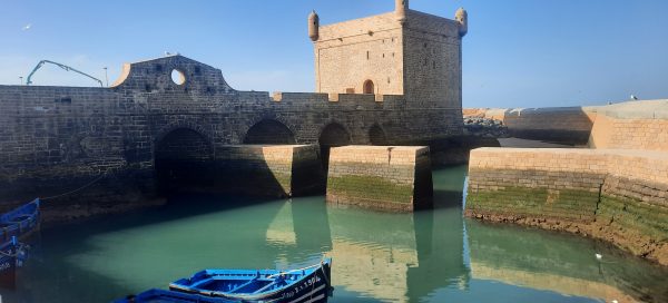 Le port d’Essaouira est très actif. Le plus renommé du Maroc selon Wikipédia. Le port historique est gardé par un petit fort carré construit sur une belle digue de pierre de taille. Dans la petite rade quelques barques bleues. 50 Dh pour la visite de la Skala du port, un peu cher !