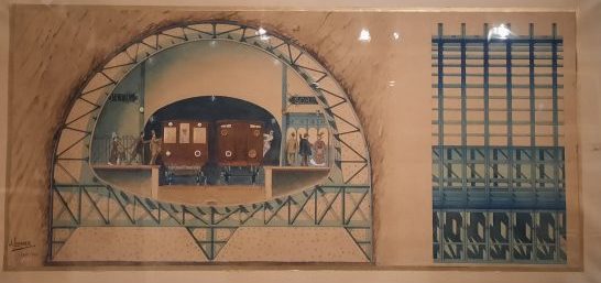 A Paris, c’est l’Exposition Universelle de 1900 qui a lancé le Métropolitain de Fulgence Bienvenüe, la ligne 1, alors Porte Maillot-Vincennes fur mise en service en juillet 1900. L’exposition présente alors photos des travaux, plans, maquettes. Des prouesses techniques sont expliquées comme le franchissement de la Seine avec la méthode du bouclier(1927-1931).Le sous-sol de Paris est déjà très occupé par les égouts mais surtout par de nombreuses carrières. Les ingénieurs ont du composer avec les difficultés.