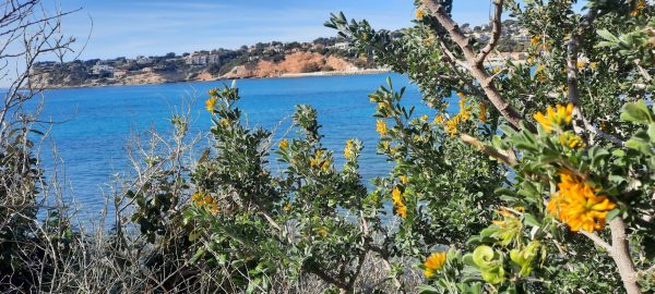 Calanque de la Tuilière : le sentier littoral très bien entretenu mène d’un côté au Port de Carry-le-Rouet (1.8 km) et de l’autre côté à Sausset-les -Pins, promenade très agréable en balcon mais très fréquentée même en février.