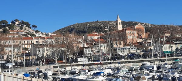 L’Estaque est un joli village qui a gardé son caractère. Cézanne, Derain, Dufy, Braque, Matisse y ont trouvé l’inspiration. Un Sentier des peintres conduit les touristes sur ls bords du port, monte à l’église et dans les rues. L’église est toute simple ; un vieil homme la sonorise avec un lecteur de cassettes. De belles villas surplombent le bord de la route, pas des bastides comme sur la Corniche JF Kennedy, mais des maisons Art Déco. La plus belle est la Villa Palestine de style mauresque avec ogives, arcs arabisants et créneaux en stuc. Les bateaux de plaisance en plastique ont remplacé les barques des pêcheurs. Autrefois la pêche faisait vivre le village u mémoire les plans des films de Guédiguian, le train qui circule sur les arcades…Nous ne sommes pas allées jusqu’à la Calanque Méjean où ont été tournés plusieurs films. Je le regrette.