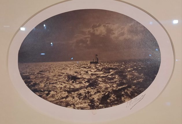Le Port du Havre des années 1850 est à l’entrée de l’exposition : La photographie de Le Gray1856 montre d’élégants voiliers et la Tour François 1er, dans le daguerréotype de Macaire , des silhouettes occupent le premier plan. La tour François 1er édifiée en 1517 fut démolie en 1861 pour permettre le passage des navires à vapeur. Non seulement ces images sont d’une beauté étonnante mais ce sont les témoignages d’un monde disparu. La technique photographique de l’époque exigeait un temps de pause important, ces arrivées de voiliers sont un véritable exploit. La technique imposait aussi une composition parfaite : la lumière est dorée dans les œuvres sépia. Une merveille dans le coucher de soleil de Le Gray.