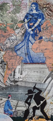 Cartes de géographie et bateaux qui relient les continents, qui ont transporté les esclaves, tout cela évoque une circulation mondiale, une mondialisation des marchandises et des personnes. Tous les personnages de la fresque sont en mouvement.