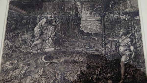Gravures des petits formats de dessins plus ou moins célèbres, dans les célèbres, un Dürer, un Goya, plusieurs dessins de Victor Hugo, plus loin deux Picasso. Des illustrations des Contes de Perrault, Gustave Doré