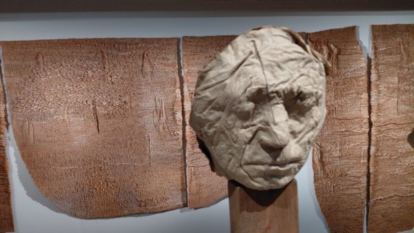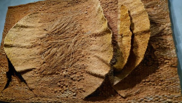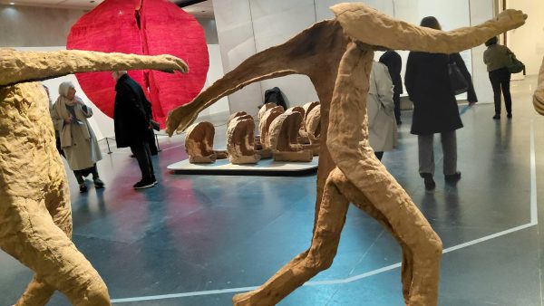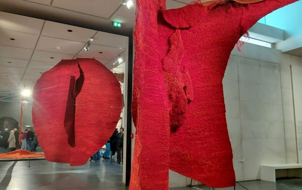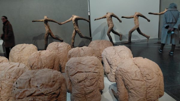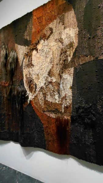 Autant j’ai aimé ses tissages et abakans, autant j’ai ressenti un profond malaise avec ses personnages de textile . Sculptures et moulages avec de la toile de jute. Masques mortuaires ou non? Rides captées ou exagérées avec les bandelettes?