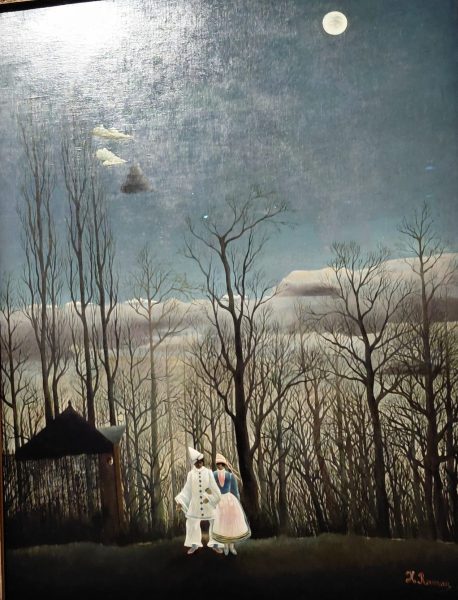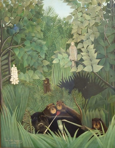 Toute une salle est occupée par cette jungle imaginaire et fantaisiste sortie de son imagination (et de l’observation de plantes tropicales dans les serres du Jardin des Plantes) . J’ai adoré les singes farceurs et cherché, perchés, les hiboux .
