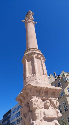 Autre repère : la Rue Serpenoise , en son mitan une longue statue métallique ondulante évoque un serpent. Elle débouche sur une grande place avec la colonne de Merten qui rappelle l’origine gallo-roamine de la via Scarponensis.