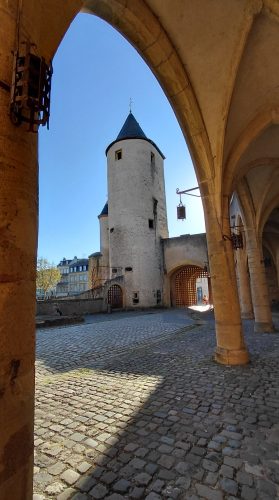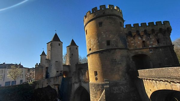la Porte des Allemands est un petit château-fort médiéval (1230-1480). les deux tours rondes en poivrière sont XIIIème, les carrées XVème . Assiége en 1552 par Charles Quint, elle résista vaillamment. Metz était une ville fortifiée ocmptant jusqu’à 18 portes et 72 tours (selon le guide Hachette)