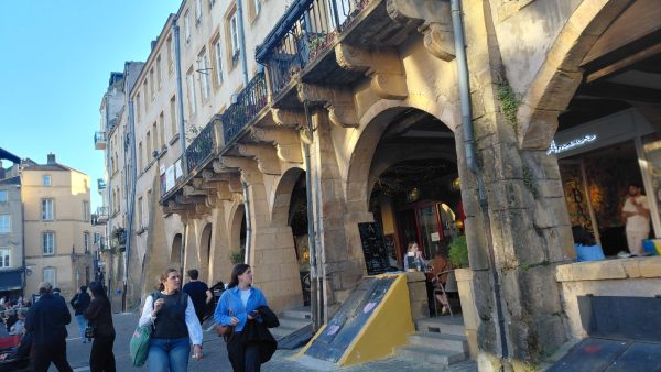 Après avoir longé l’eau nous nous dirigeons vers le Centre-ville en passant sous les lignes ferroviaires, puis dans la circulation par la grande rue Haute-Seille, jusqu’à la vaste place Coslin, un parking peu accueillant sous une tour sans grâce d’habitations (style années 70). A l’approche du Coeur de Ville historique, les rues se rétrécissent, la circulation automobile s’apaise et nous nous installons sur la première terrasse au soleilau coin de la rue Lassale et de la rue de la Fontaine : celle du Restaurant L’Hédoniste . CLIC / Ardoise à 25€ Entrée+plat et amuse-bouche offerts. Feuilleté aérien au chèvre chaud,côte de veau rose avec une sauce aux champignons délicieuse. Une adresse à retenir.