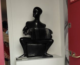 La Maison de Chana Orloff est l’oeuvre d’Auguste Perret, les structures en béton sont visibles rappelant les maisons à pan de bois. A l’étage un décor en relief un peu comme les décors à la pointe de diamant, pour les pièces d’habitation. Dans l’entrée j’ai aperçu l’accordéoniste