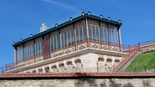 Poursuivant la rue de la Tombe-Issoire, nous découvrons les très vastes réservoirs protégés par des rouleaux de fils barbelés dissuasifs. Second Empire, dûs à Alphand, l’ingénieur responsable des travaux hydrauliques de Paris ainsi que des Parcs, comme le Parc Monsouris tout proche.