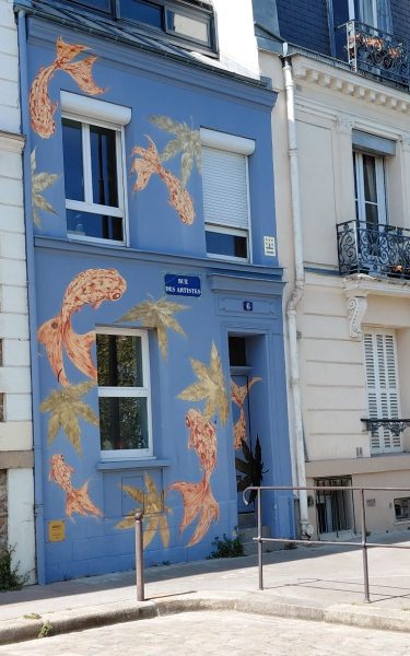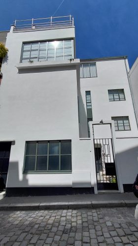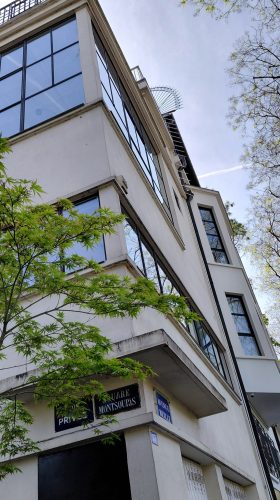 Au coin on remarque encore une maison d’architecte. A l’autre extrémité on découvre le Parc Montsouris avant d’y entrée, détour par la Rue Braque où l’atelier du peintre, oeuvre d’Auguste Perret, est masqué par une jungle de lierre, bambous et autres lianes. Des volets métalliques obstruent les fenêtres Est-il à l’abandon? Mystère! Une observation plus attentive laisse penser que non, le jardin est propre et la poubelle sortie.