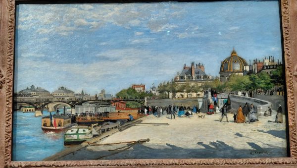 le Pont des Arts surprend par sa netteté des traits,. Point de taches de lumière, de grands coups de pinceau flous, ici c’est net et précis. Dans le tableau voisin des Grands boulevards je retrouve à travers le léger feuillage les taches de lumière.