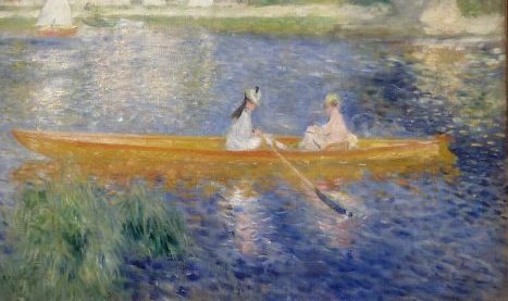 Pas de jeunes hommes en maillot blanc dans cette yole, deux femmes rament seules dans ce tableau à la facture très impressionniste.