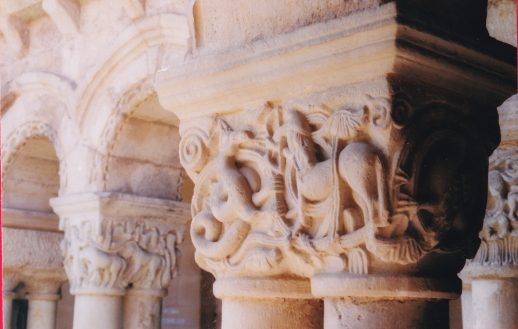 A l’intérieur est très sombre. Une machine à sous est censée déclencher les éclairages sans résultat. On devinera plus qu’on n’admirera les deux buffets d’orgue à chamade. Le retable baroque est bien doré, orné de statues peintes sur des nuages empilés comme il se doit. C’est un baroque encore raisonnable, on en a vu de bien plus délirants au Portugal ou en Sicile. Ce qui m’a le plus amusée, c’est une fresque naïve du 15ème : le Massacre des Innocents. Des chevaliers en cotte de maille brandissent de grandes épées, des têtes sont tranchées. Leurs adversaires sont enturbannés : Scènes de la Reconquête ou Croisades ?