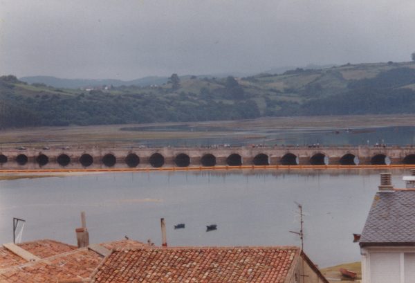 Vers Laredo, la Nationale 634 double l’autoroute, c’est plus intéressant. Nous traversons des petites villes balnéaires aux immeubles de briques, avec de grosses villas à toit en double-pente appelées curieusement « chalets ». Sur les collines, des églises romanes. Nous évitons Santander par l’autoroute, encore des usines et des raffineries ; Solvay a construit un complexe pétrochimique qui empeste jusqu’à la mer.