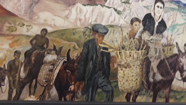 Cela ne fait rien, une seule œuvre va me combler Lucania61’ de Carlo Levi très grand tableau peint (18.50mx3.20m) peint à l’occasion du Centenaire de l’Unité Italienne, fresque immense en trois tableaux, avec de nombreux personnages. Mario Soldati, Guttoso, dans plusieurs vidéos passionnantes, analysent l’œuvre. Guttoso compare Lucania61 à un opéra de Verdi, en effet le tableau en a le lyrisme et le panache. On peut découper en trois parties, trois actes. Trois paysages : la caverne (comment ne pas penser aux sassi ?), le retour des paysans au village (on pense à Aliano et à son livre Le Christ s’est arrêté à Eboli), l’assemblée sur une place de la ville autour du poète Rocco Scotellaro (la ville, la politique).