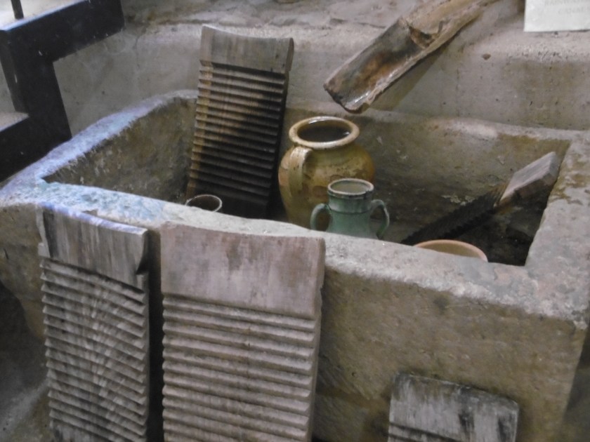 La deuxième partie de la visite se déroule en bas dans les hypogées. Le palais fut construit sur 7 grottes, habitations ou ateliers d’artisans creusées en éventail dans la roche et s’ouvrant sur 3 cortili. Je suis surprise agréablement par la fraîcheur de ces grottes après mes pérégrinations sous le soleil et la visite des salles étouffantes à l’étage. Fraicheur et sentiment de paix. Qu’on est bien dans le ventre de la terre quand il fait plus de 30° dehors ! Dans la pestilence les anciens habitants des sassi avaient au moins le confort de l’art conditionné !