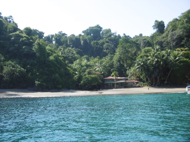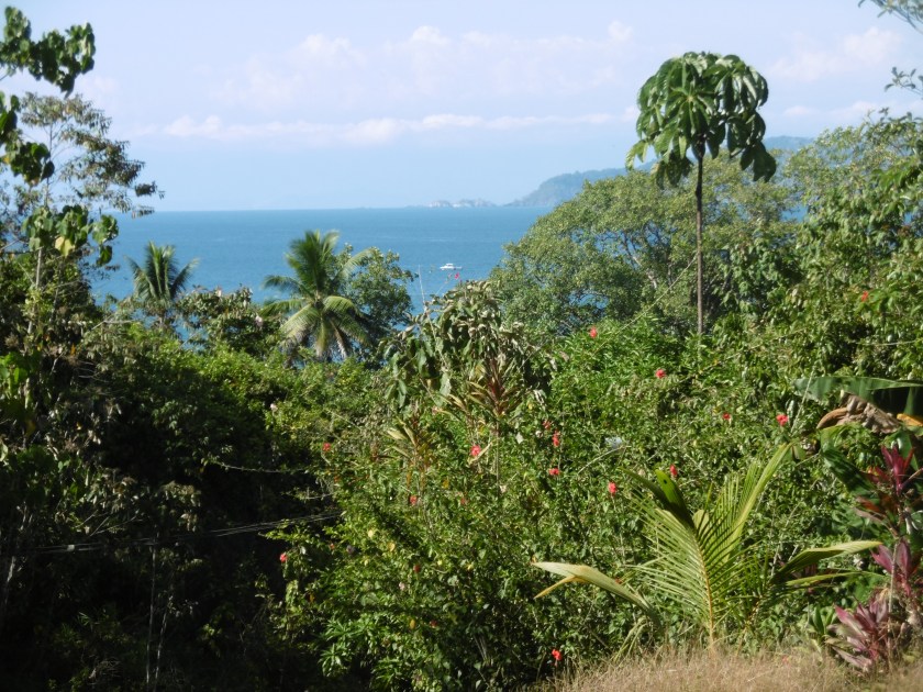 Uvita, station balnéaire plus développée que Dominical. C’est là que nous aurions dû venir pour les courses et pour trouver un restaurant. Passé Dominical, nous avons deviné les resorts luxueux bien cachés dans la campagne. Il y a même des maisons à étages (premiers immeubles rencontrés depuis Jaco), un golf est signalé.