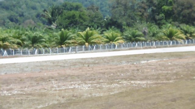 11h, le taxi vient nous conduire à l’aéroport de Drake Bay. Où se cache-t-il ? Une piste poussiéreuse, aucune indication, un gué dans une large rivière peu profonde, entre deux rangées de palmiers à huile, je distingue un grillage puis la piste de décollage. Le bâtiment est un peu plus loin, tout simple comme une gare de campagne. Des sièges dans la salle d’attente, trois comptoirs, trois compagnies se partagent le trafic, la nôtre c’est Aerobell. Pas de tableaux électroniques pour les arrivées et les départs. Un seul employé recopie à la main nos noms, prénoms et numéros de passeport. Il nous appelle ensuite pour la pesée.